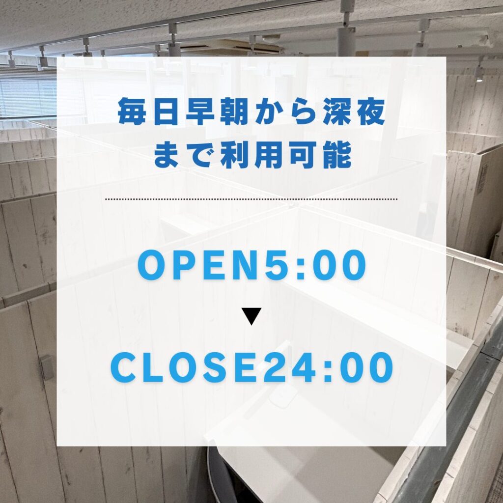 「勉強カフェ堺なかもず|自習室よりも勉強カフェ」は、毎日朝の5時〜夜の24時までOPENしています。会員様のライフスタイルに合った月額料金をご用意しております。平日の朝だけなどお好きな会員スタイルをお選びいただくことが可能です。また、毎日スタッフがいて環境整備を行い、店内を快適な状態に保ちます。