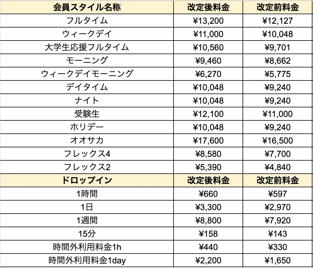 2026年1月分の利用料金より、勉強カフェ堺なかもずについて、以下の料金改定を実施させていただきます。
