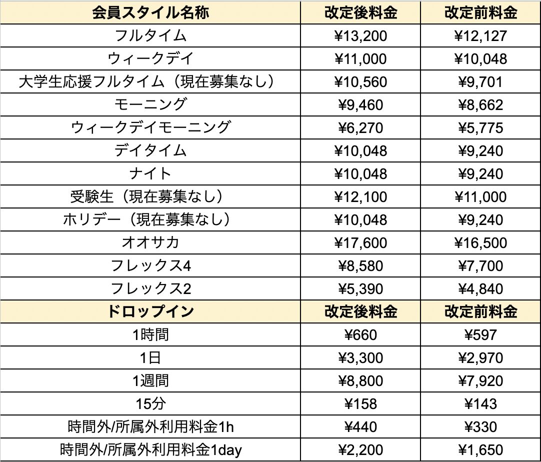 2026年1月分の利用料金より、勉強カフェ堺なかもずについて、以下の料金改定を実施させていただきます。